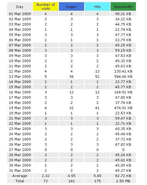 Monthly traffic for 2009: