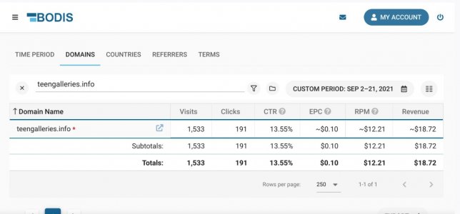 Attached is the screenshots of Bodis Records on Traffic and Revenue with the countries.